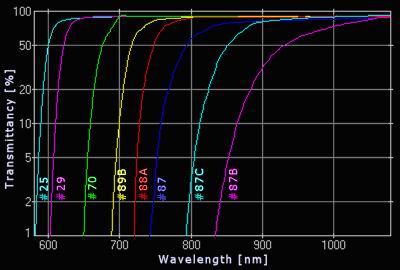 Available filters and Infrared film stock comparisons